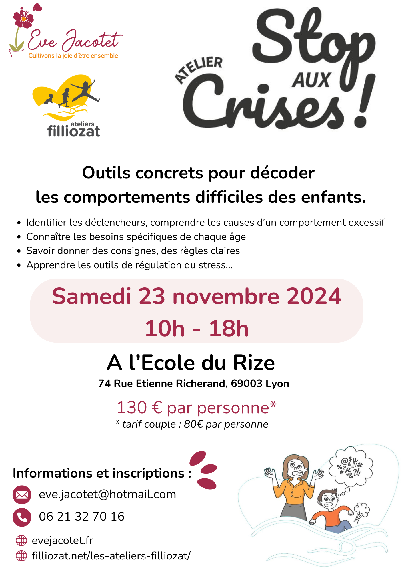 Outils concrets pour décoder les comportements difficiles des enfants. Identifier les déclencheurs, comprendre les causes d'un comportement excessif Connaître les besoins spécifiques de chaque âge Savoir […]
