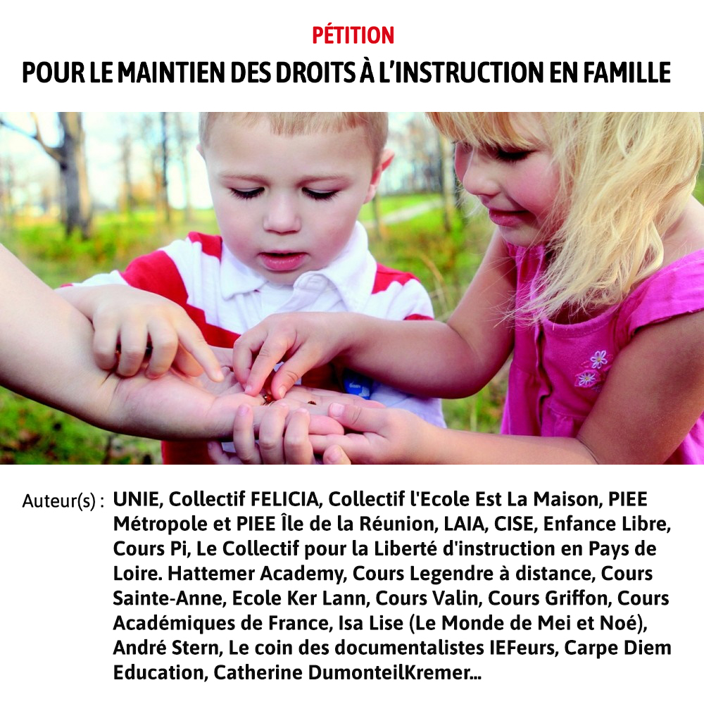 Isabelle Filliozat soutient une pétition portée par l’UNIE et plusieurs autres associations favorables à l’IEF, ainsi que par des personnalités publiques. Elle est l’une des plus grosses pétitions du site mesopinions.com : Pour le maintien des droits à l’instruction en famille.